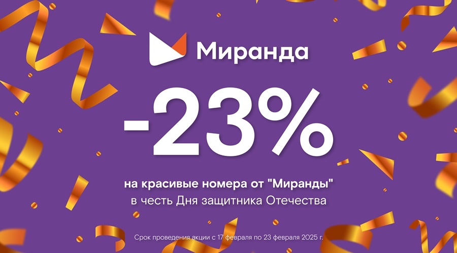 «Миранда» к 23 февраля предлагает скидку 23% на красивый номер