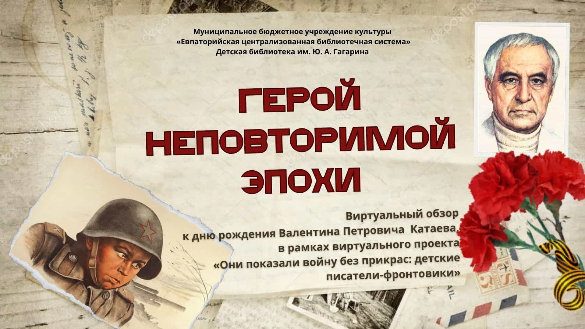 28 января 1897 года родился Валентин Петрович Катаев – русский писатель, поэт, журналист, драматург, сценарист. С самых ранних своих лет Валентин Катаев был влюблён в литературу и без неё не мог прожить и дня. Каждое событие своей жизни он пытался запечатлеть в своих литературных произведениях: рассказах и повестях, пьесах, стихах и очерках. На глазах писателя свершались многие важные исторические события: он участник трёх войн – Первой мировой, Гражданской и Великой Отечественной. У Валентина Катаева была удивительная способность находить общий язык с людьми разных возрастов. В своих книгах он обращался и к взрослым, и к подросткам, и к детям. В сказках он убедительно и просто разговаривал с младшими школьниками об очень непростых вещах: об ответственности, трудолюбии, дружбе. Говорилось в книгах и о семейных ценностях. Писатель был удостоен множеством наград: двумя Георгиевскими крестами и орденом Святой Анны VI степени, тремя орденами Ленина, орденом Октябрьской Революции, двумя орденами Трудового Красного Знамени, орденом Дружбы народов и девятью медалями.