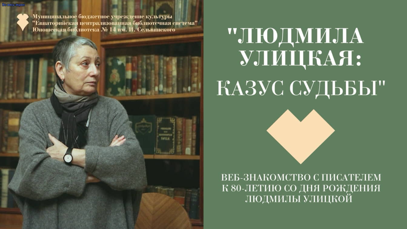 21 февраля 2023 года писательница и сценарист Людмила Евгеньевна Улицкая отмечает свой 80‑летний юбилей . Она является одной из самых известных современных русских писательниц, автором повести «Сонечка», романов «Казус Кукоцкого», «Даниэль Штайн, переводчик», «Искренне Ваш, Шурик» и других. Сама писательница так характеризует своё творчество: «Я отношусь к породе писателей, которые главным образом отталкиваются от жизни. Я писатель не конструирующий, а живущий ».