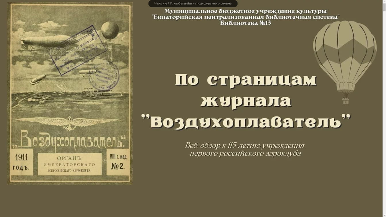 По страницам журнала «Воздухоплаватель»
