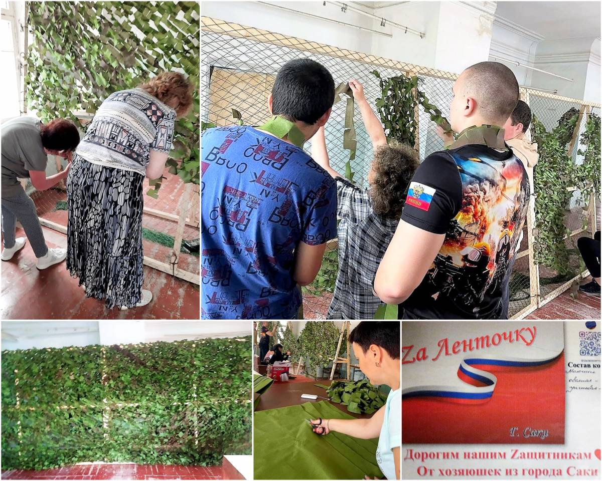 Молодёжь города Саки делает маскировочные сети для участников СВО