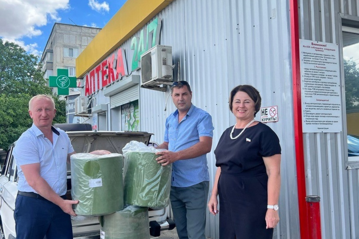 Депутат Государственного Совета Республики Крым от фракции «Единая Россия» Оксана Сацик передала ткань «спандбонд» для плетения маскировочных сетей волонтёрам из трёх сельских поселений Красногвардейского района.