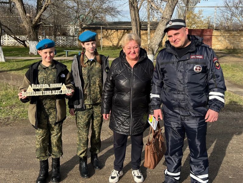 Сотрудники Госавтоинспекции Нижнегорского района совместно с юноармейским отрядом «Будущее России» провели профилактическую акцию «Водитель помни! Пешеходов тоже ждут дома!»