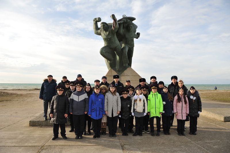 Затем полицейские, ветераны ОВД и кадеты выехали к памятнику десантникам, возведенном на побережье. Как дань памяти погибшим в жестокой схватке с врагом традиционно в море был спущен венок.