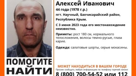 Волонтеры поискового отряда «ЛизаАлерт Крым» разыскивают 44-летнего жителя поселка Научный Бахчисарайского района Алексея Лисицина.