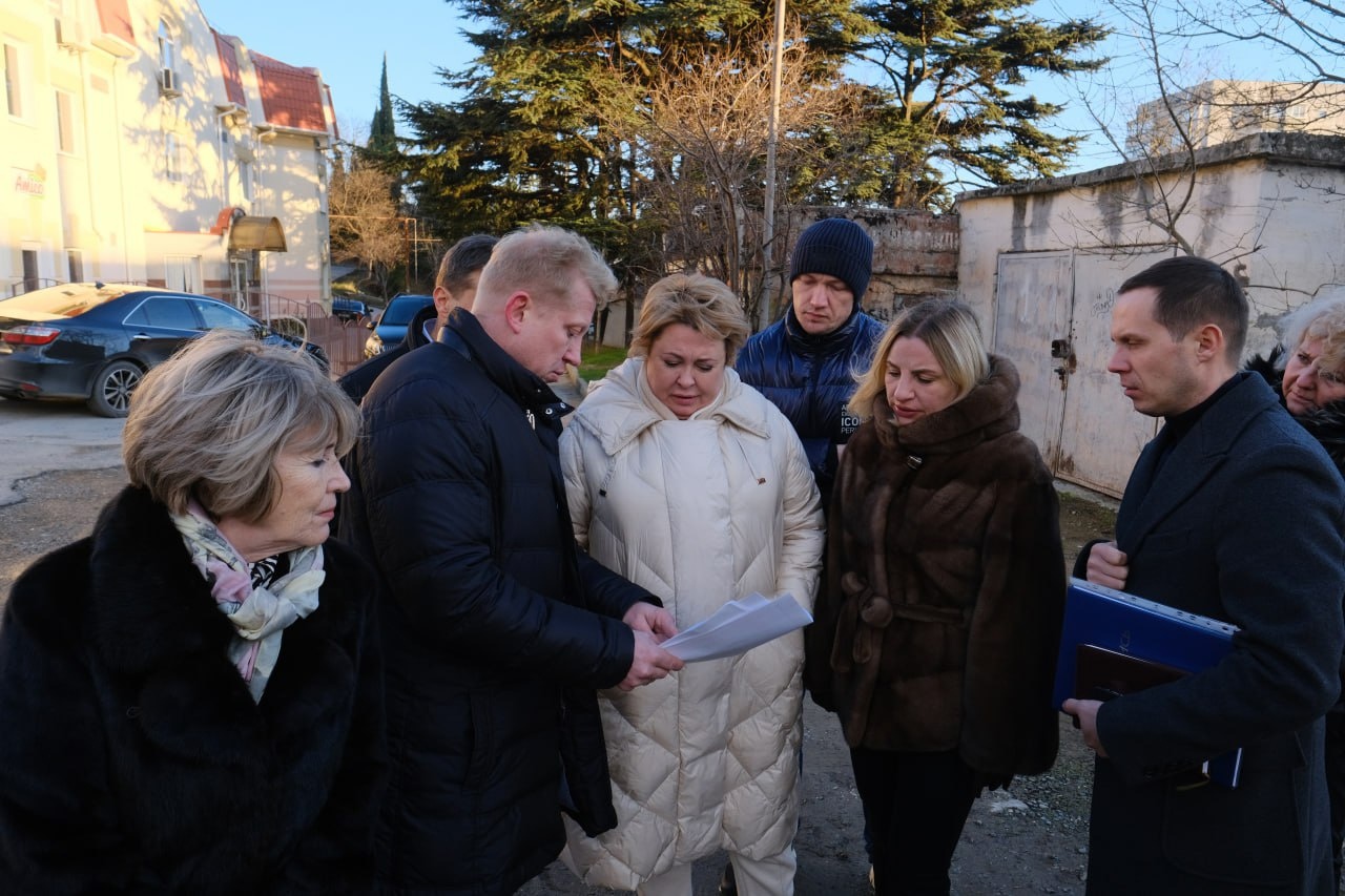 Министр спорта Республики Крым Ольга Торубарова, Глава муниципального образования-председатель Ялтинского городского совета Константин Шимановский и глава администрации Ялты Янина Павленко осмотрели участок на ул.16 апреля 1944 года в Массандре