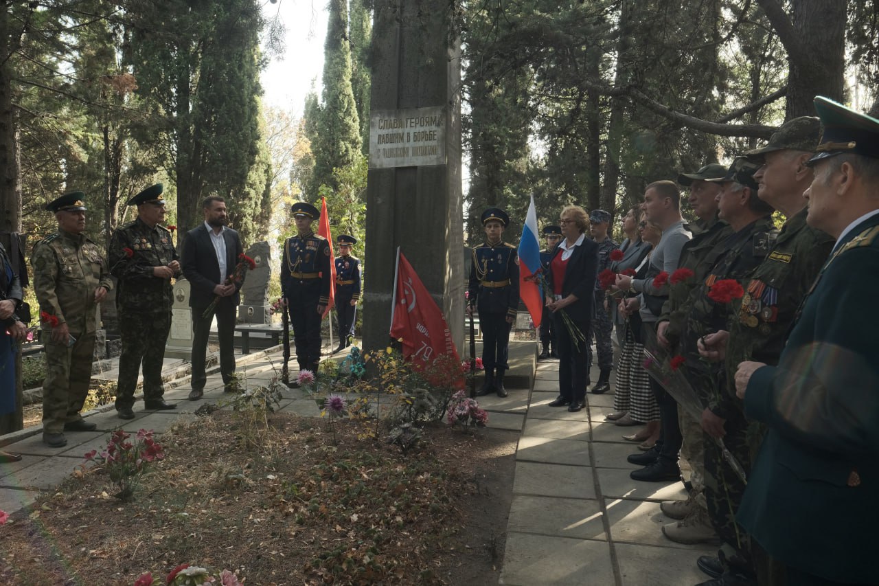 Ветераны погранвойск напомнили о роли стражей границ в партизанском движении Крыма во время Великой Отечественной войны: именно пограничники первыми встречали врага и ценой неимоверных человеческих потерь отразили несколько атак противника, чем замедлили его продвижение на Севастополь. К братской могиле участники митинга возложили цветы, память погибших героев почтили минутой молчания.