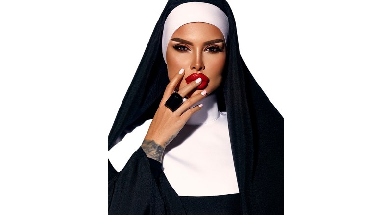 Казалось бы: и что такого? Масштабы цинизма и бессовестности становятся ясны, после того как видишь убранство этого салона. Заведение увешано фотографиями женщины, мягко говоря, далёкой от христианских идеалов. Максимум макияжа, накачанные губы и взгляд с вульгарнейшей поволокой. При этом дама одета в монашеское облачение, а на шее у неё красуется распятие. Полное ощущение, что открывшие этот салон красоты предприниматели издеваются над образом кроткого, самоотверженного и возвышенного служения Богу.