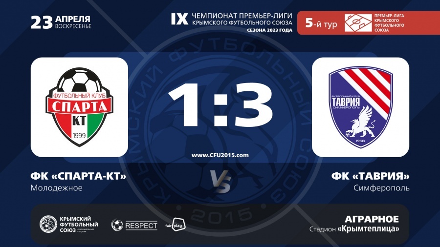 ФК "Спарта-КТ" (Молодежное) – ФК "Таврия" (Симферополь) – 1:3. Протокольные данные