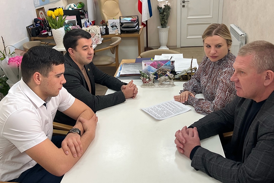 Министр спорта РК Ольга Торубарова провела встречу с одним из ведущим крымским борцов греко-римского стиля, студентом Крымского среднего профессионального училища (техникум) олимпийского резерва, кандидатом в мастера спорта России Эльдаром Эмировым и его личным тренером Ленуром Мамедовым .