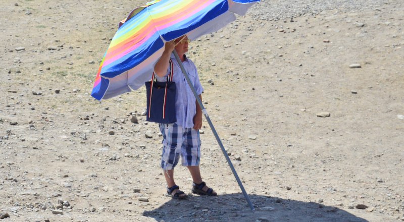 Во время полуденного пекла на пляже лучше не появляться - зонтик от теплового удара не спасёт.