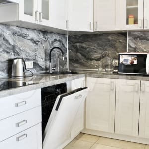 Техника: посудомоечная машина, 2 телевизора, кондиционер, стиральная машина, холодильник, плита, микроволновая печь, кофемашина.
