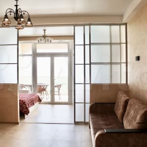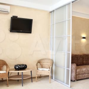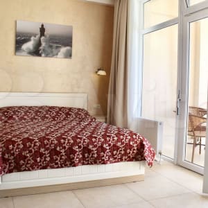 Зона кухни отделена от спальни. На кухне расположен 2хспальный раскладной диван, в спальне - 2хспальная кровать.