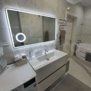 Квартира оснащенна всей современной техникой телевизоры в каждой комнате, кондиционеры в 2х комнатах, а так же на кухнее, 9ти килограмовая стиральная машина LG, полный комплект встраиваемой техники Korting (газовая поверхность, духовка, вытяжка) холодильник, посудомоечная машина, автономное отопление 2х контурный котел, теплые полы, есть все для комфортного проживания Вашей семьи.